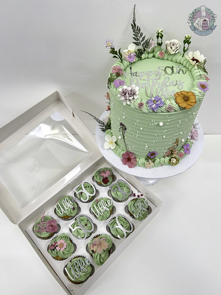 The Floral Birthday cake! This pretty yet simple birthday cake is available in 6” 8” and 10”, decorated with sugar pearls and mini flowers it would be the star of any party. Inspired by the garden trending theme cakes, this one contains pressed florals as well as silk!