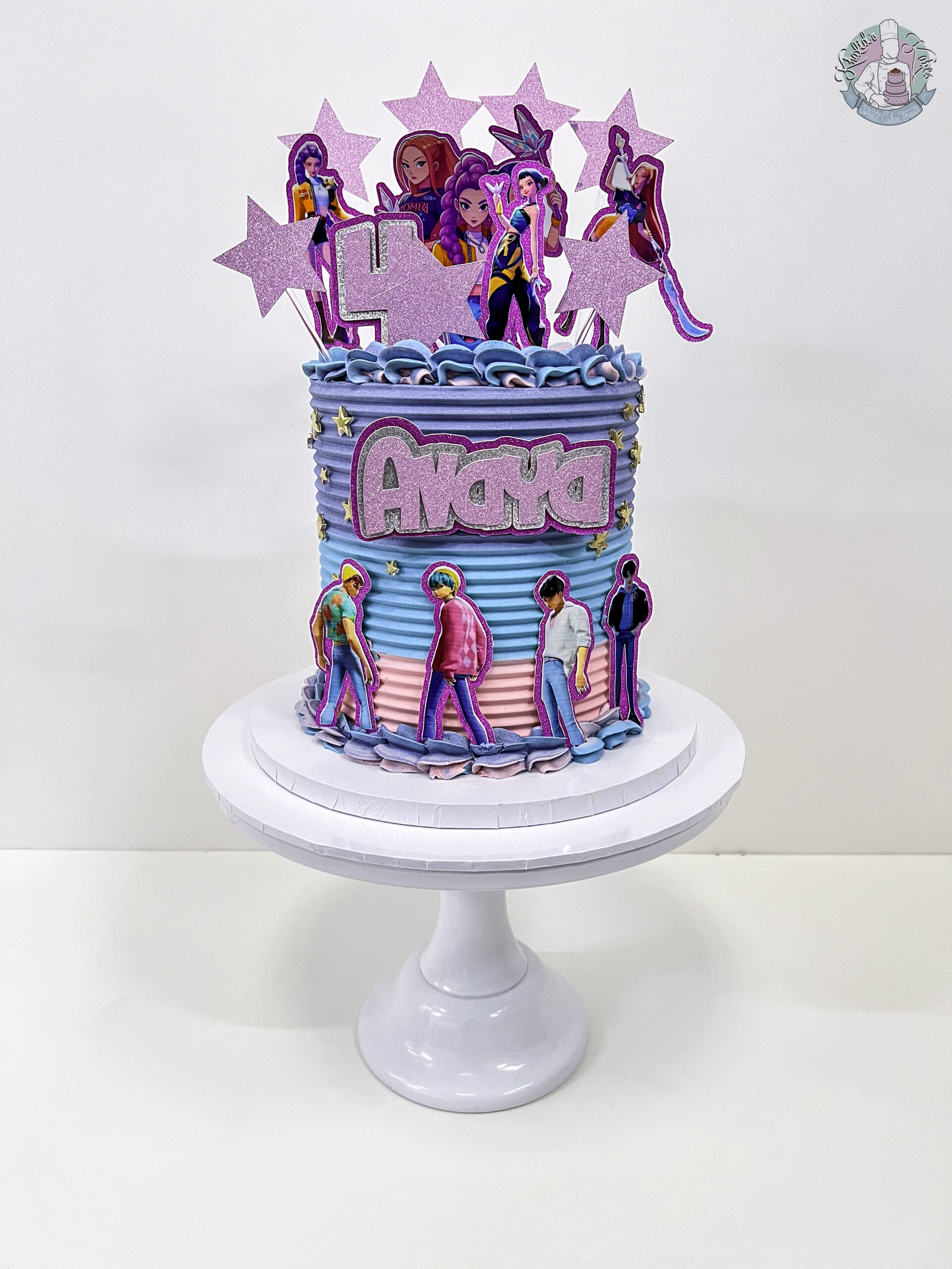 Jump into action with our Kpop Demon Hunters Cake, the perfect centrepiece for any young Kpop celebration in Birmingham. You can customise the colours to match your Childs favourite themes!