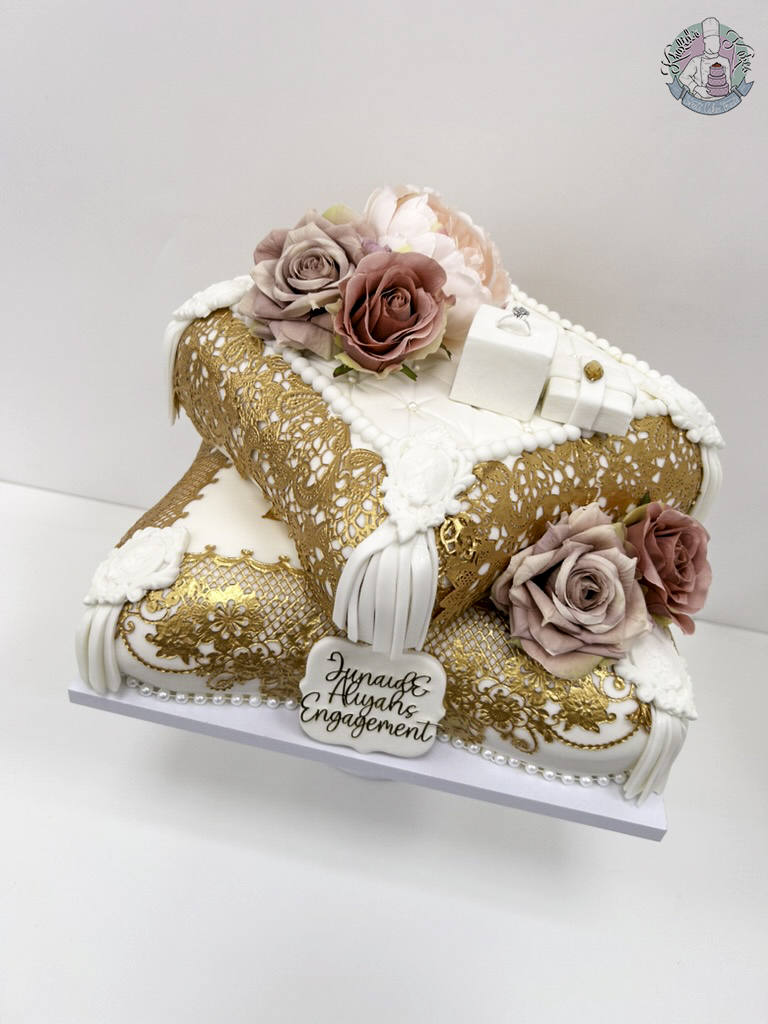 Celebrate your Wedding with our Nikkah Pillow Cake, designed for Asian weddings in Birmingham. This cake could also be used as an Engagement Pillow Cake.