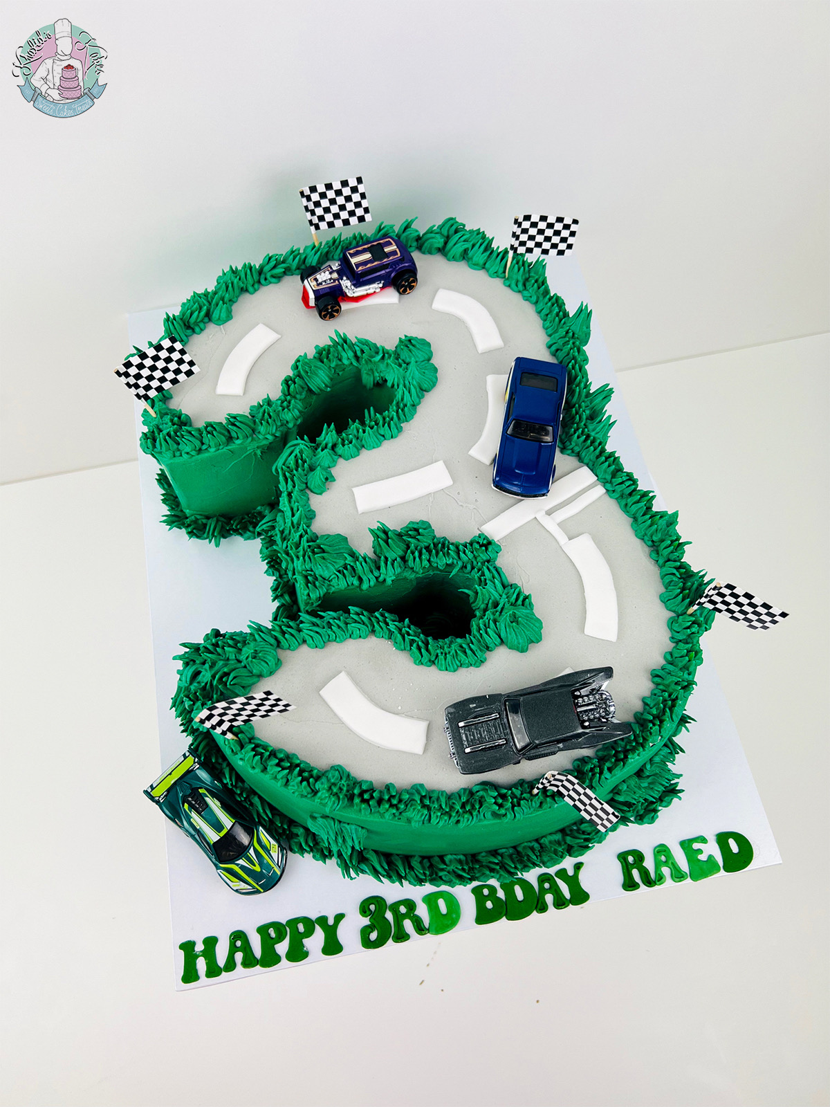 A Number Cake made for a future racer. This cake would be a great addition to any party or event and can fit a range of ages by changing the number to suit.