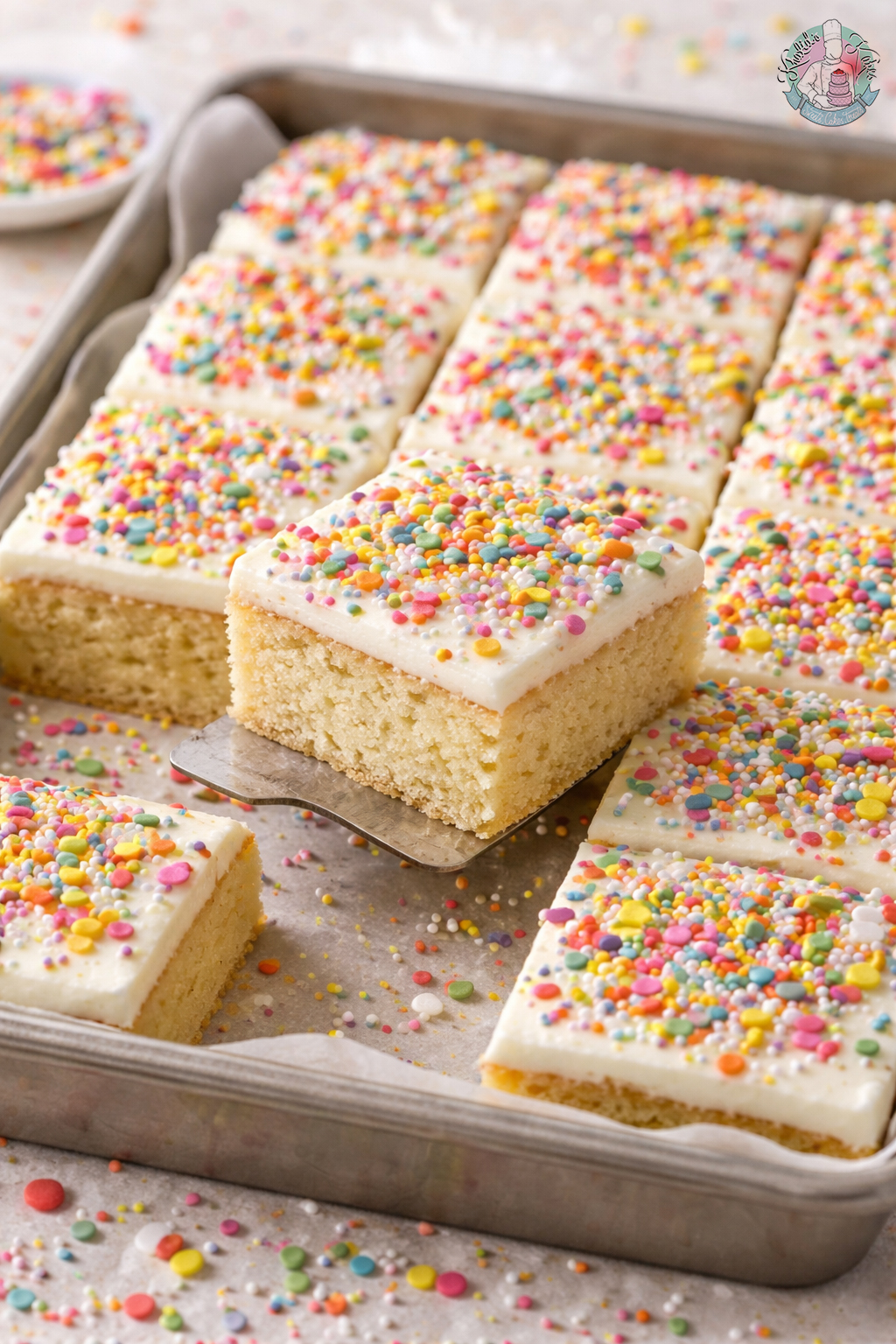Our Old School Sprinkle Cake Traybake’s are a great addition to any party, celebration or function. Old school cakes just hit the spot, a delicious treat that can be shared amongst family and friends or saved in the freezer for anytime pickings. A Vanilla sponge cake topped with old school icing and sprinkles! The perfect treat with custard!